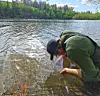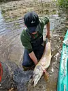 Målebrettet var akkurat langt nok for denne gjedda.(Foto: Carl Fredrik Brude og Gabriel Eggebø, NMBU.)