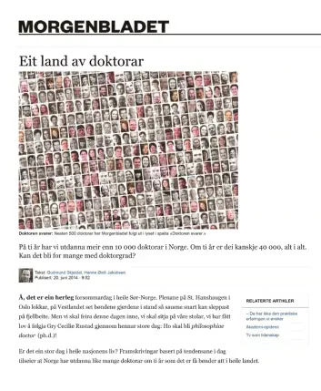 I Morgenbladet den 20. juni spurte en stor reportasje: Blir det for mange med doktorgrad i dette landet? Jeg synes det er et godt spørsmål. Fra media får man inntrykk av at det er et mål at alle skal ha høyere utdanning, men for samfunnet er det selvfølgelig ingen god ide. Hvem skal reparere radiatoren og produsere mel hvis alle bare vil forske på universets opprinnelse?