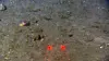 Smakebit b: Nedenfor skråningen på østsiden av Hjelmen består bunnen av sandholdig slam med litt grus og småsteiner som danner kjærkomne sitteplasser for rosa anemoner. Avstanden mellom de røde laserprikkene er 10 cm. (Foto: MAREANO)
